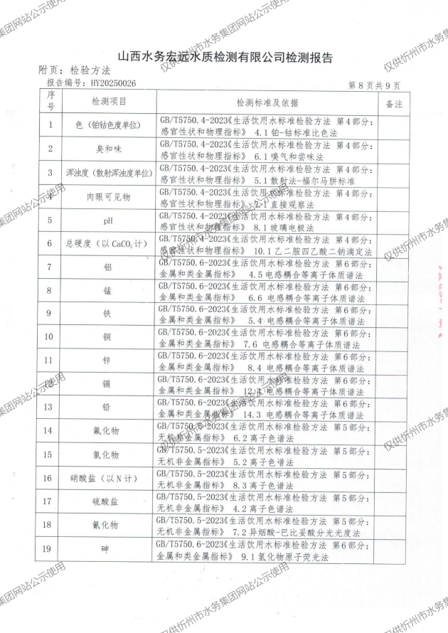 忻州城區公共供水水源水、出廠水、管網水、管網末梢水2025年02月份水質信息公示