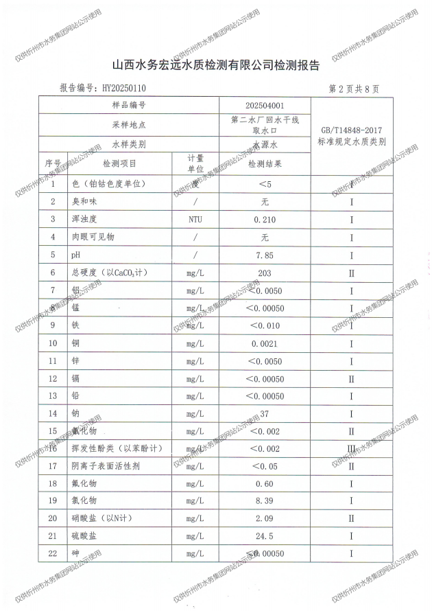 忻州城區公共供水水源水、出廠水、管網水、管網末梢水2025年4月份水質信息公示