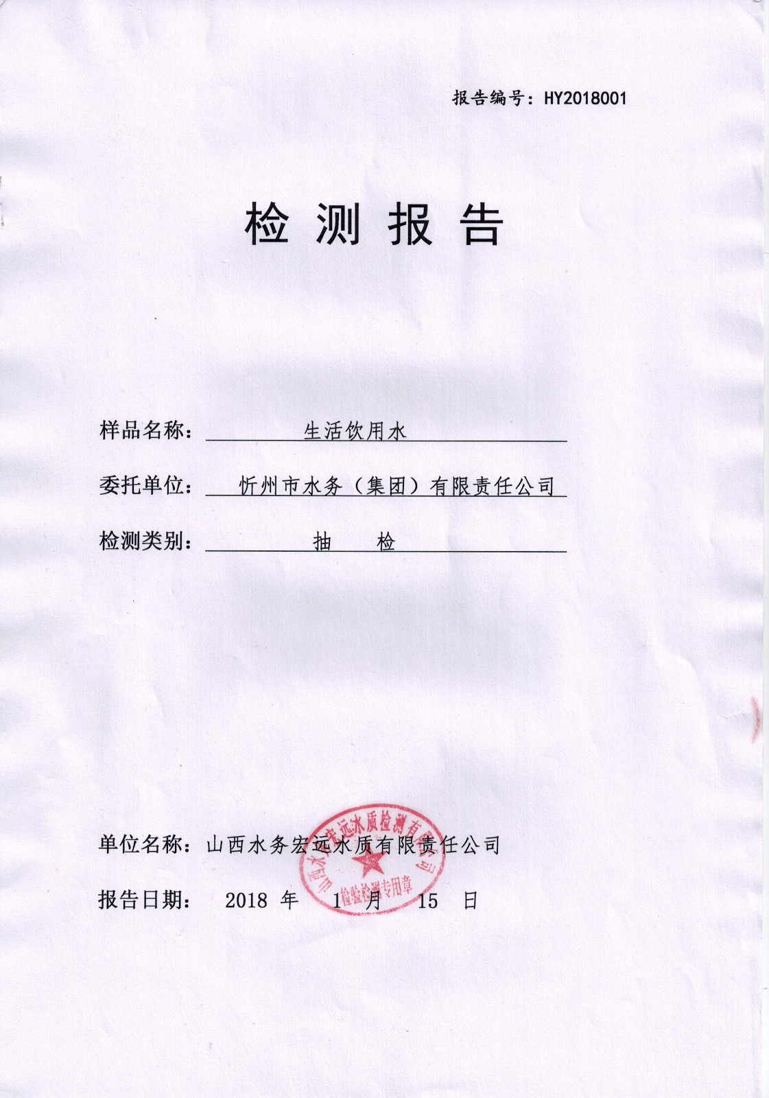 忻州城區(qū)公共供水水源水、出廠水、管網(wǎng)水、管網(wǎng)末梢水2018年1月份水質(zhì)信息公示