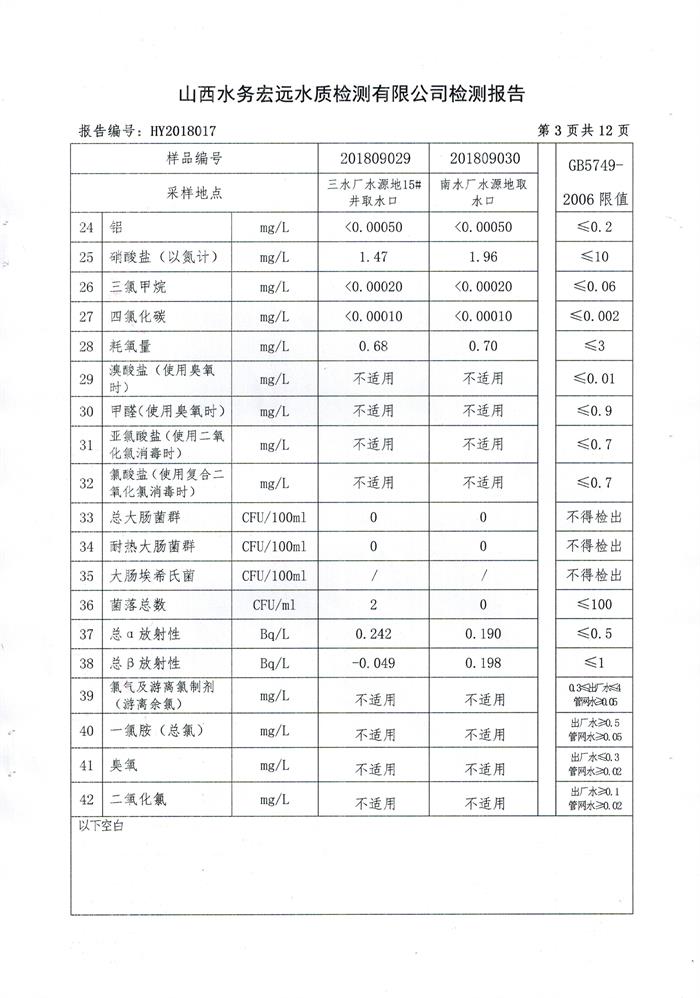 忻州城區(qū)公共供水水源水、出廠水、管網(wǎng)水、管網(wǎng)末梢水2018年9月份水質(zhì)信息公示