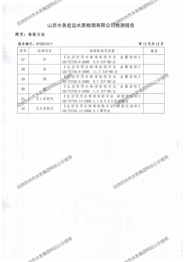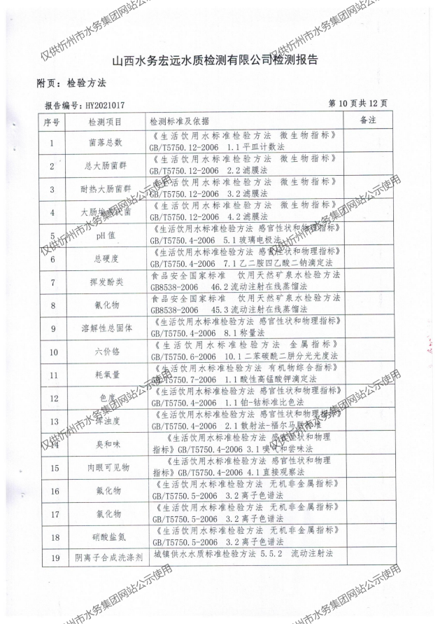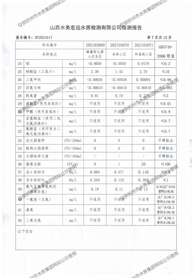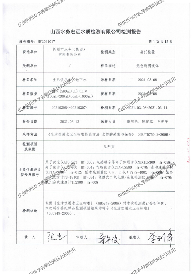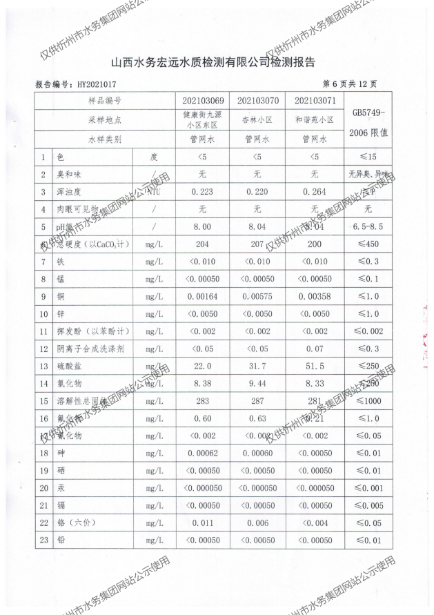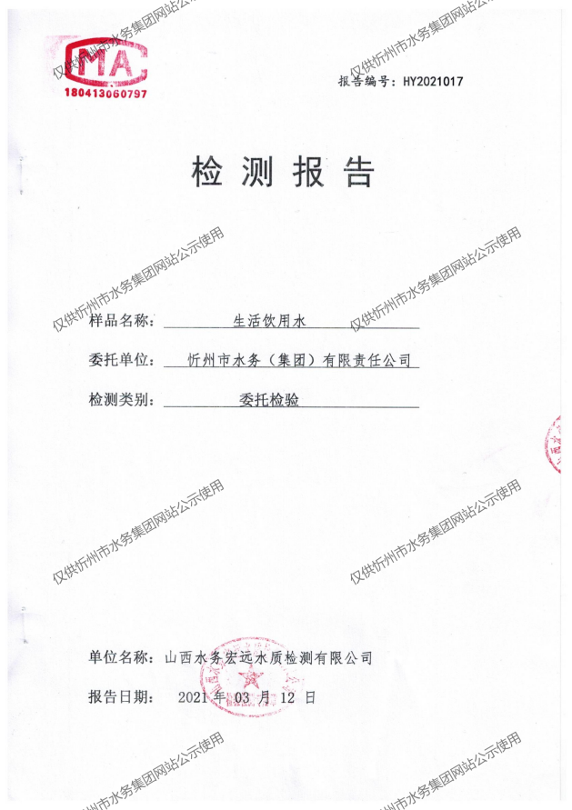 忻州城區公共供水水源水、出廠水、管網水、管網末梢水2021年3月份水質信息公示