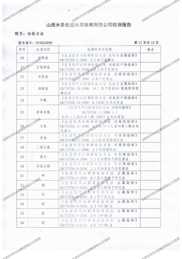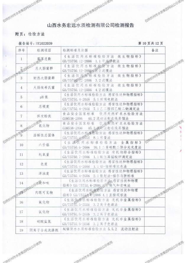 忻州城區公共供水水源水、出廠水、管網水、管網末梢水2022年5月份水質信息公示