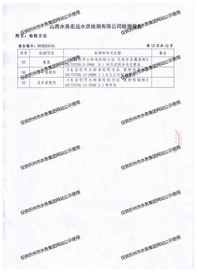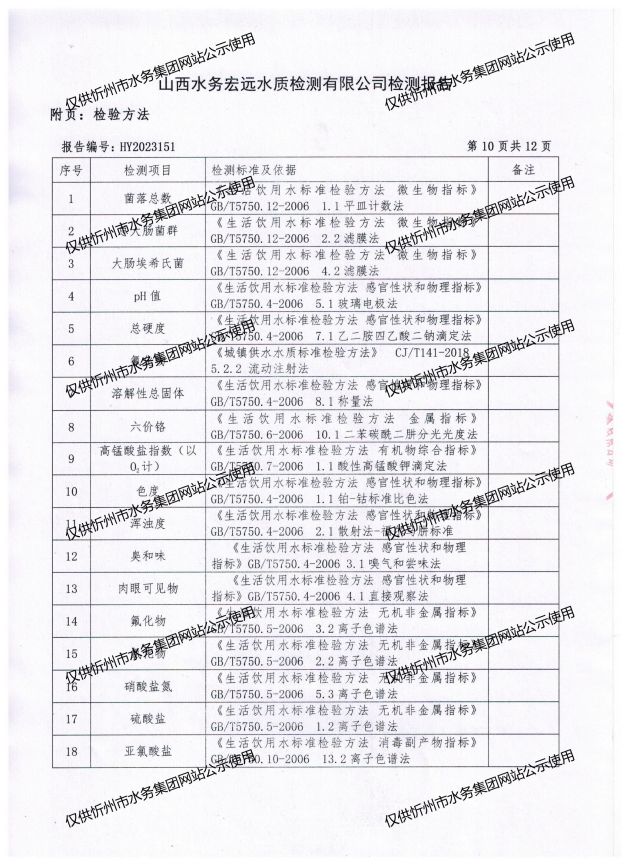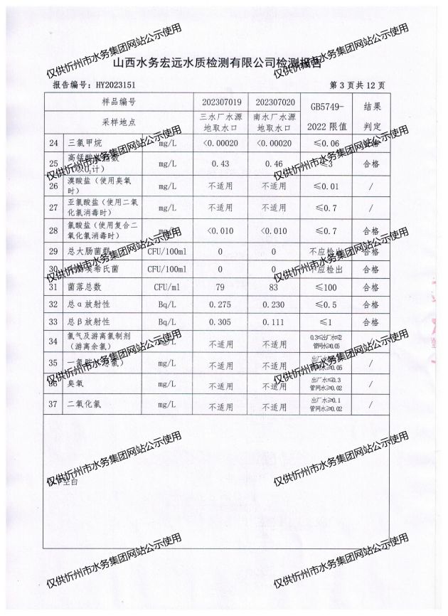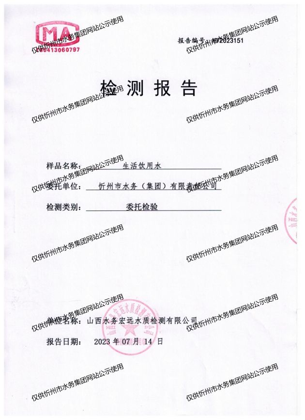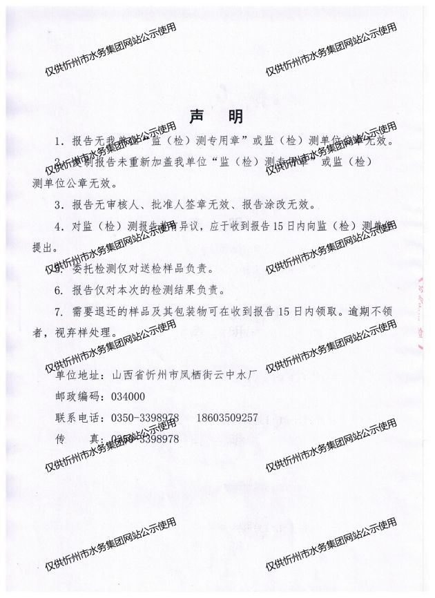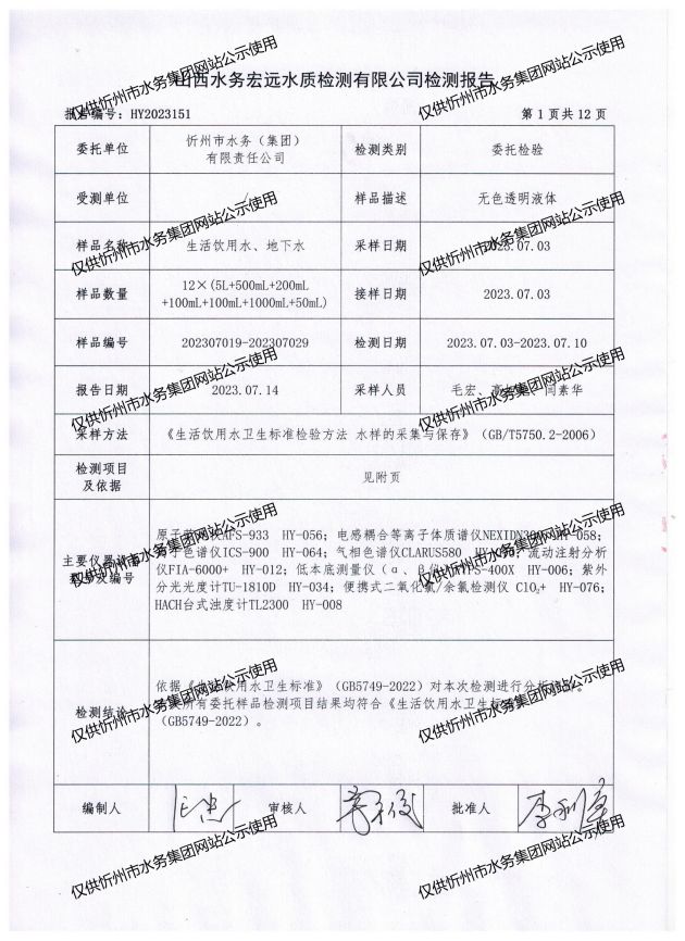 忻州城區公共供水水源水、出廠水、管網水、管網末梢水2023年7月份水質信息公示